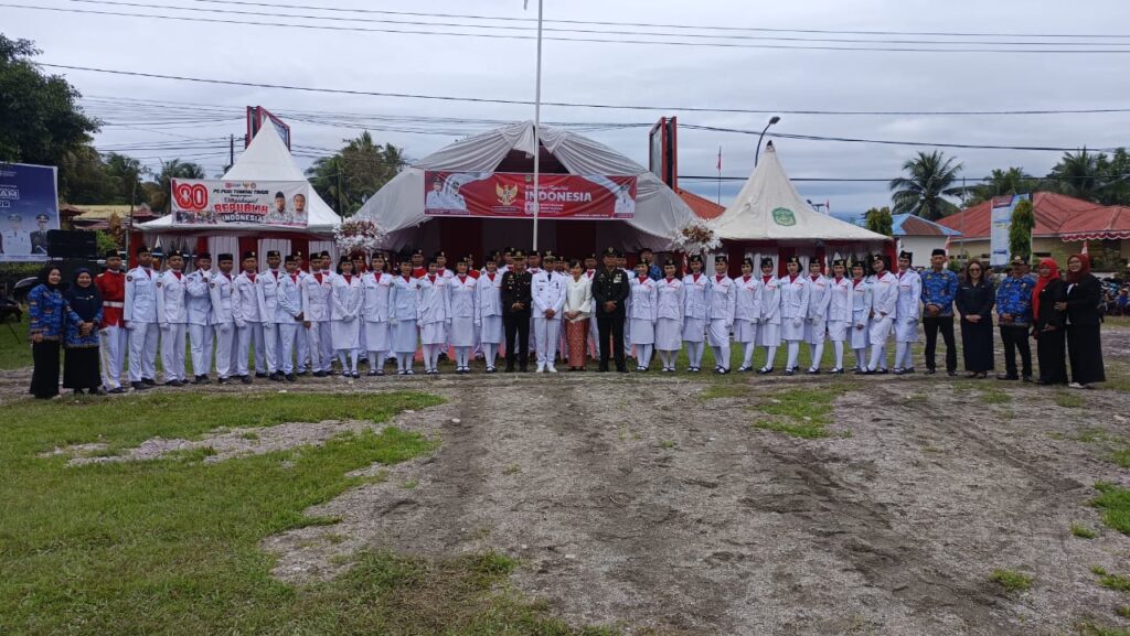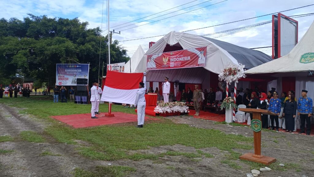 Tomoni Timur, Fakjur – Upacara peringatan Hari Ulang Tahun (HUT) ke-80 Kemerdekaan Republik Indonesia di Kecamatan Tomoni Timur berlangsung khidmat di Lapangan Batara Guru, Desa Kertoraharjo, Minggu (17/8/2025).