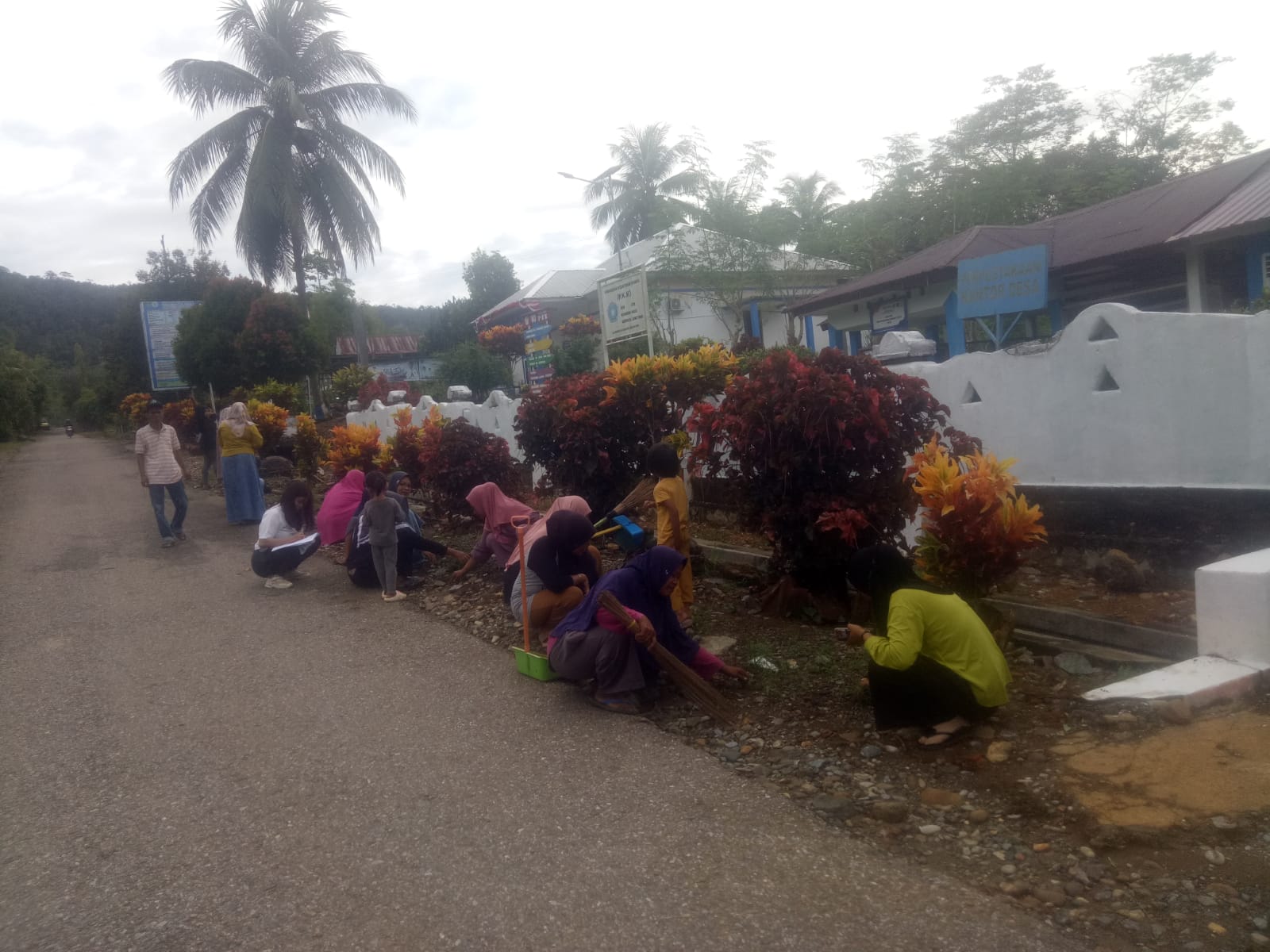 Arman, Kepala Dusun Harapan, menjelaskan bahwa kegiatan sudah dimulai sejak pagi dengan membersihkan taman di sekitar kantor desa serta sepanjang jalan di Dusun Waemami dan Dusun Harapan.