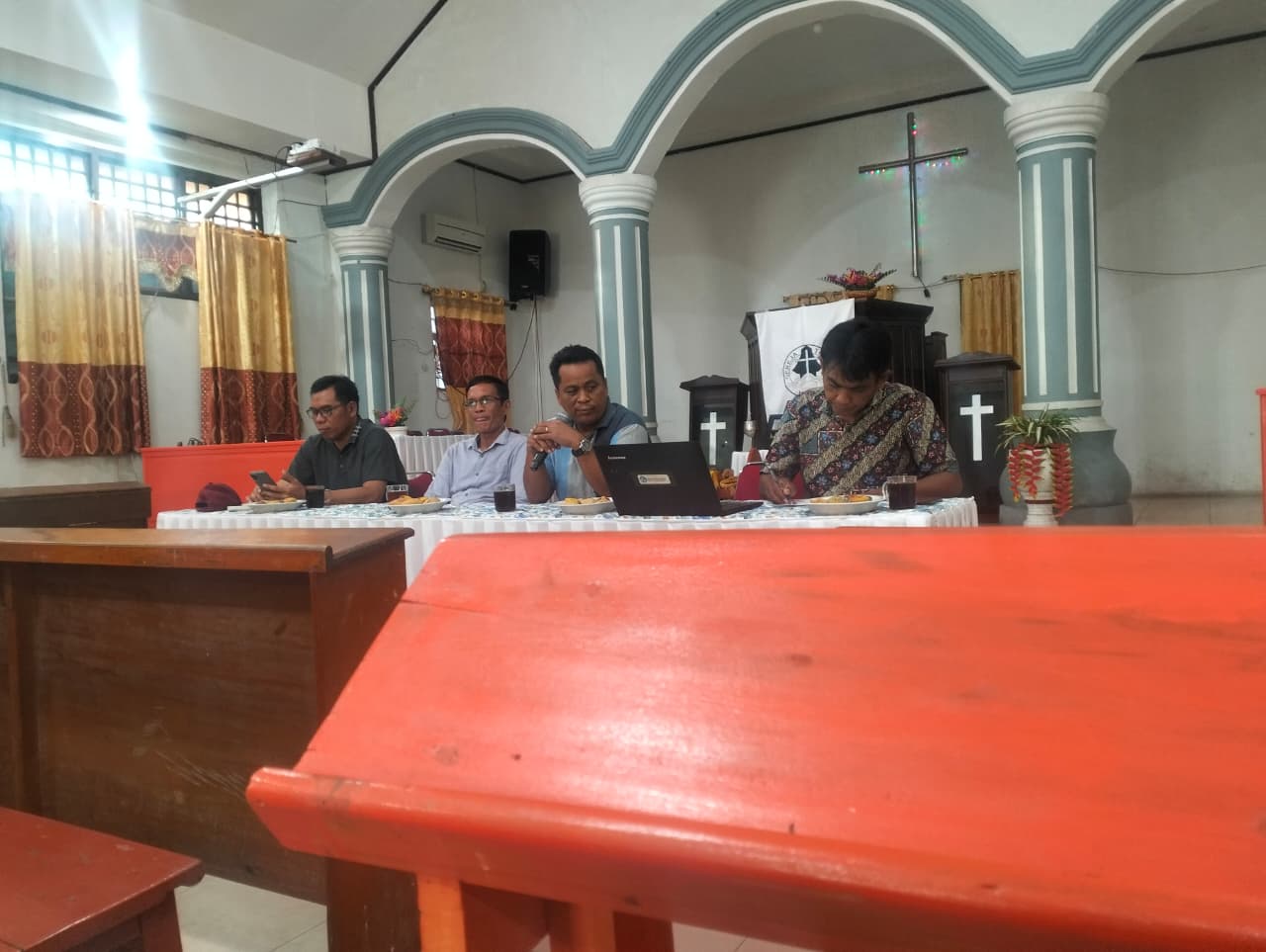 Rapat dipimpin langsung oleh Ketua Panitia, Ade Yani, serta dihadiri Camat Tomoni Timur, Ketua FKSG Luwu Timur, Pdt. Yorim Karima, Sekretaris Panitia Jasman, Bendahara, dan jajaran panitia lainnya.